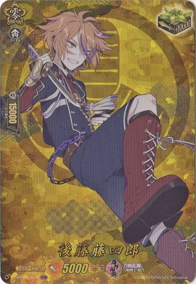 後藤藤四郎 (ごとうとうしろう) トリガーユニット 刀剣乱舞 刀剣男士-短刀 グレード 0 パワー 5000 クリティカル 1 シールド 15000 ブースト クリティカルトリガー+10000 - - スタンダード D-TB01/TRR12 TRR (C)2015 EXNOA LLC/Nitroplus