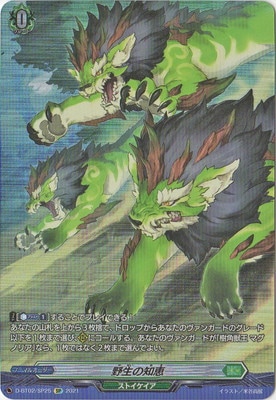 野生の知恵 (ヤセイノチエ) ノーマルオーダー ストイケイア - グレード 0 パワー - クリティカル - シールド - - - 【コスト】[【カウンターブラスト】(1)]することでプレイできる! あなたの山札を上から3枚捨て、ドロップからあなたのヴァンガードのグレード以下を1枚まで選び、(R)にコールする。あなたのヴァンガードが「樹角獣王 マグノリア」なら、1枚ではなく2枚まで選んでよい。 - スタンダード D-BT02/SP25 SP 米谷尚展